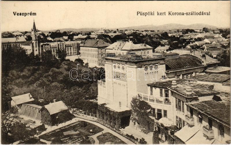 Veszprém, Püspöki kert, Korona szálló. Fodor Ferenc kiadása https://www.darabanth.com/de/377-Fernauktion/377.0/Ansichtskarten/Ungarn~2000006/Veszprem-Puspoki-kert-Korona-szallo-Fodor-Ferenc-kiadasa~II2159124