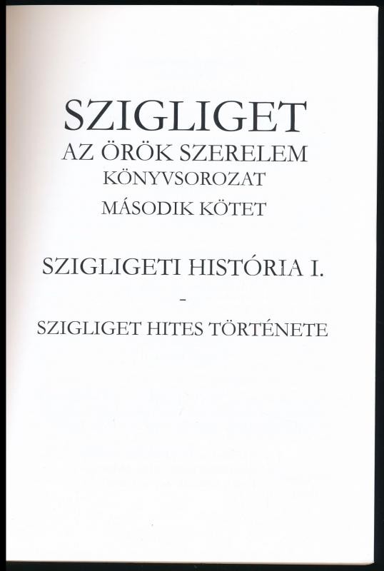 Szigligeti história I. Szigliget hites története. Szerk.: Takács József- Szabó Tibor András- Balassa Dániel. Szigliget, az örök szerelem című sorozat második része. Szigliget, 2015, az Esterházy Pince Szigliget Kft. kiadása. Papírkötésben, a jobb felső sarok kissé gyűrött, de egyébként jó állapotban.