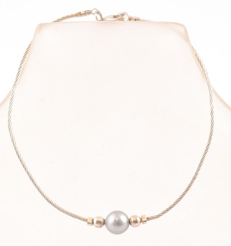 Beschreibung: Ezüst(Ag) karperec gyönggyel, jelzett, kis deformációval, d: 5 cm, bruttó: 1,85 g