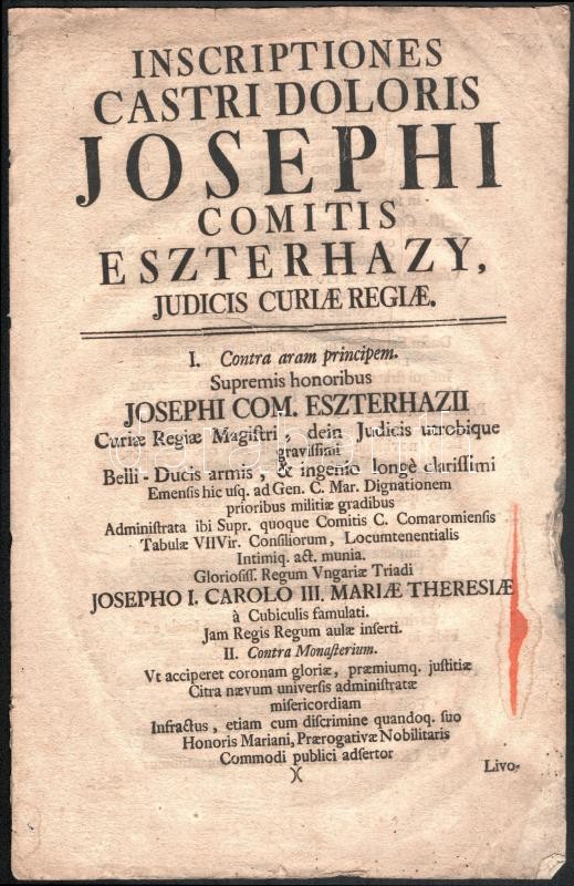 cca 1748 Inscriptiones Castri Doloris Comitis Eszterházy, Judicis Curi... https://www.darabanth.com/de/377-Fernauktion/377.0/Kunst-Dokumente-andere-Sammelgebiete/Drucksachen~32/cca-1748-Inscriptiones-Castri-Doloris-Comitis-Eszterhazy-Judicis-Curiae-Regiae-hn-nyn-foltos-~II2038553