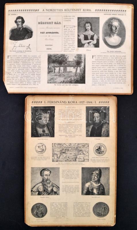 Beschreibung: cca 1920-1930 Iskolai szemléltető tábla I. Ferdinánd koráról és Fáy Andrásról, sarkai sérültek 42x29 cm, 29x42 cm