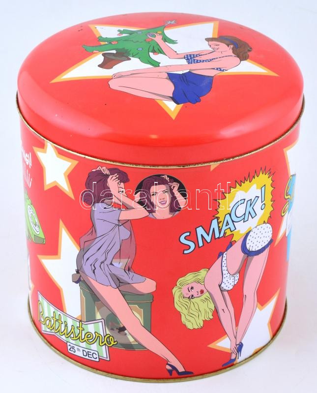 Beschreibung: Battistero fém süteményes doboz, kopásnyomokkal, d: 22 cm, m: 23 cm