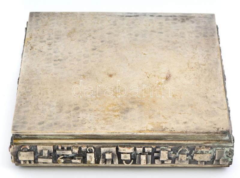 Iparművész fém tál, oldalán plasztikus absztrakt ornamentikával díszít... https://www.darabanth.com/de/377-Fernauktion/377.0/Kunst-Dokumente-andere-Sammelgebiete/Flohmarkt~12/Iparmuvesz-fem-tal-oldalan-plasztikus-absztrakt-ornamentikaval-diszitett-aljan-Iparmuve~II2221197