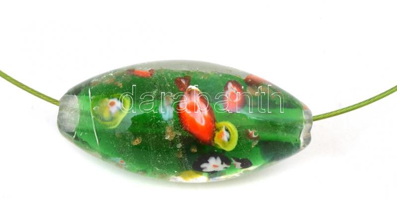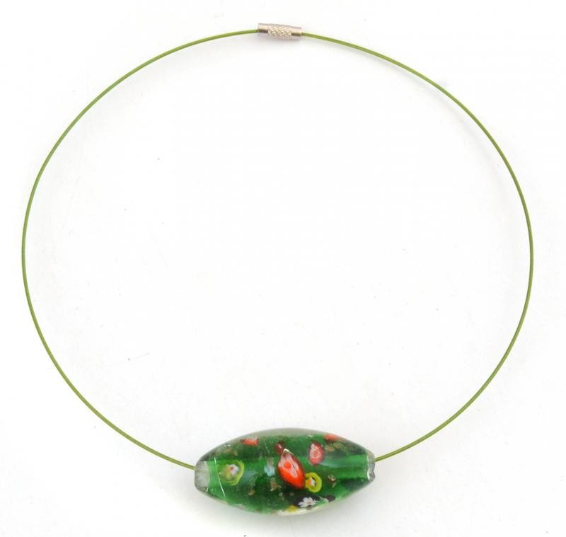 Beschreibung: Millefiori üveg medál zöld sodrony lánccal, d: 14 cm, medál: 2,5x5 cm
