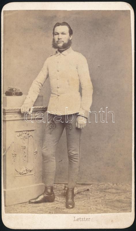Beschreibung: cca 1870 Droppa József katona korában, hátoldalon feliratozott keményhátú fotó Letzter kassai műterméből, 10,5×6 cm