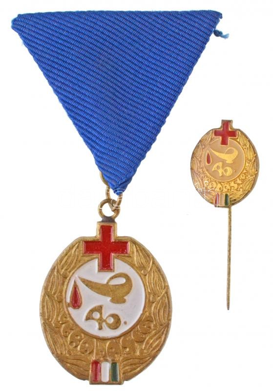 ~1970-1980. "40. Véradásért" festett, aranyozott fém jelvény mellszalagon, miniatűrrel T:1-2