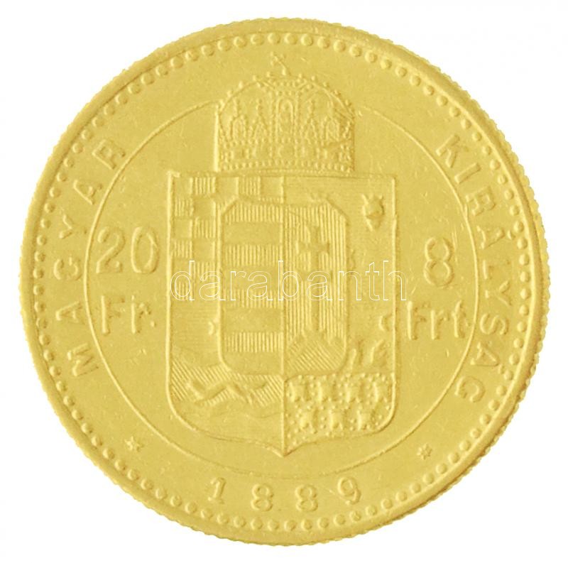 1889KB 8Ft/20Fr Au "Ferenc József / Középcímer" Körmöcbánya ... https://www.darabanth.com/de/377-Fernauktion/377.0/Numismatik/Goldmunzen-und-Gedenkmunzen~1500012/1889KB-8Ft20Fr-Au-Ferenc-Jozsef-Kozepcimer-Kormocbanya-6-45g0900-T2-karc-Hungary-~II2108988