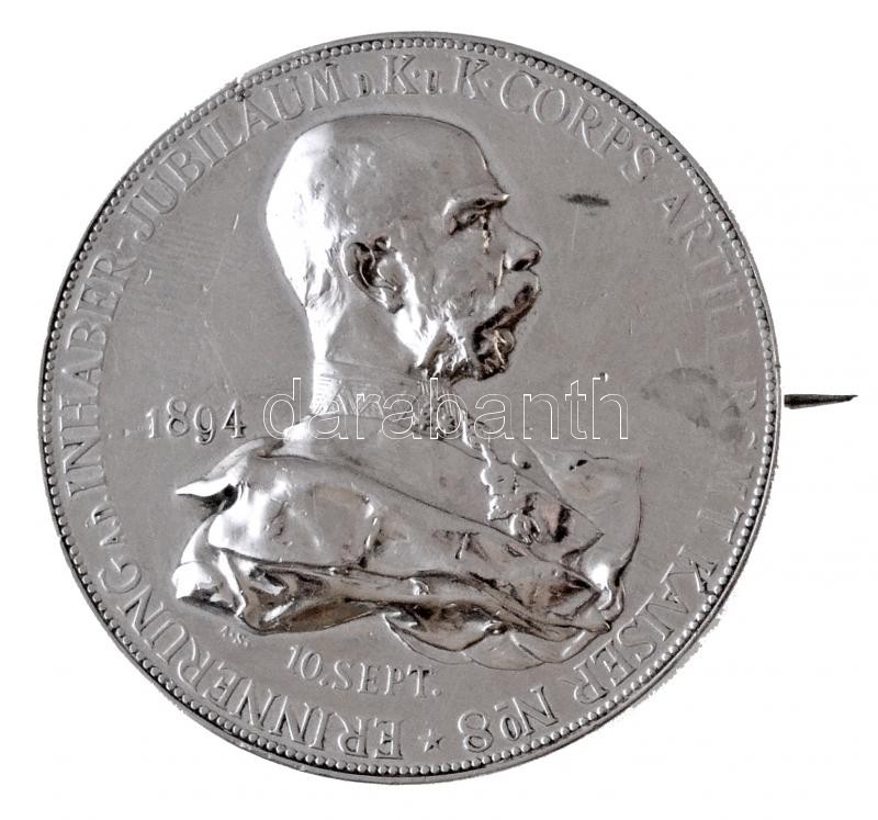 Austro-Hungarian Monarchy 1894. "40th Jubilee medal of the K. u. K 8th "Kaiser" Field Artillery Regiment " silver plated Br commemorative medallion without hallmark, turned into a badge. Sign.: Anton Scharff (30,89g/39mm) C:XF dirt