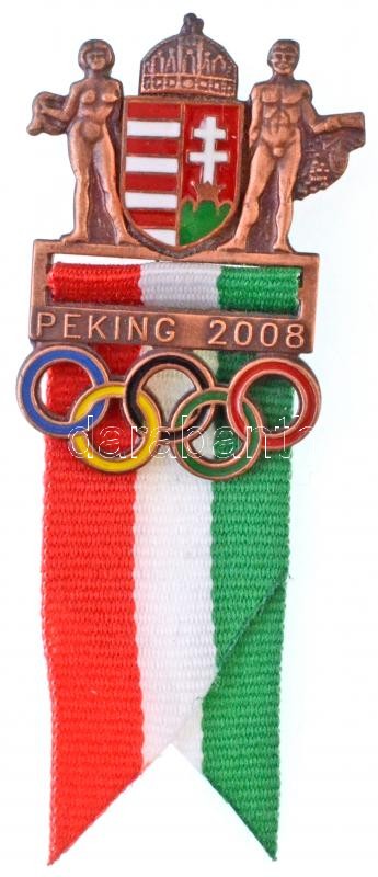 2008. "Peking Nyári Olimpia magyar részvételi érem" zománcozott Br jelvény szalagsávon (31x43mm) T:1