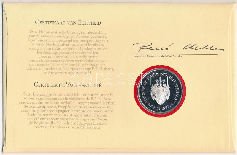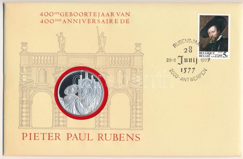 Belgium 1977. "Peter Paul Rubens" a Postamesterek gondozásában kiadott Ag emlékérem (20g) érmés, bélyeges borítékon, Belgium bélyeggel, elsőnapi bélyegzővel, dán nyelvű ismertetővel, műbőr tokban T:PP