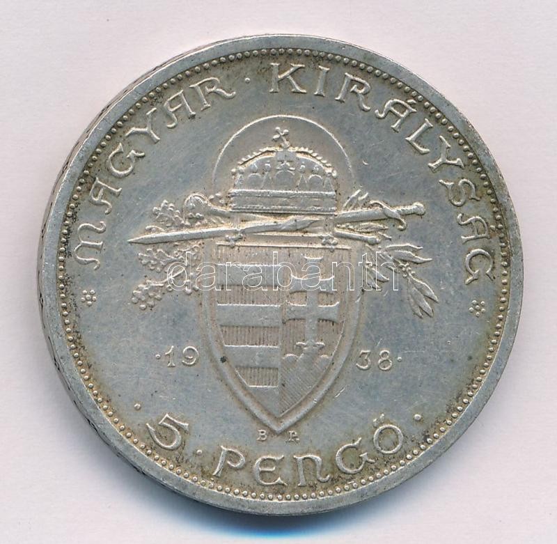1938. 5P Ag "Szent István" T:2 patina Adamo P8.1 https://www.darabanth.com/de/377-Fernauktion/377.0/Numismatik/Ungarische-Munzen-und-Munzen-mit-ungarischem-Munzzeichen~1500008/1938-5P-Ag-Szent-Istvan-T2-patina-Adamo-P81~II2218645