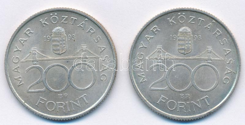 1993. 200Ft Ag "MNB" (2x) T:2 Adamo F13 https://www.darabanth.com/de/377-Fernauktion/377.0/Numismatik/Ungarische-Munzen-und-Munzen-mit-ungarischem-Munzzeichen~1500008/1993-200Ft-Ag-MNB-2x-T2-Adamo-F13~II2221035