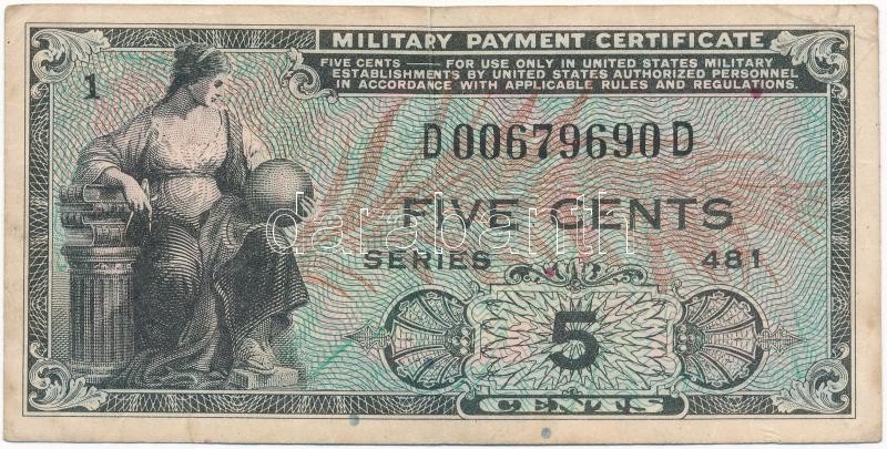 Amerikai Egyesült Államok / Katonai kiadás 1951. 5c "481." s... https://www.darabanth.com/de/377-Fernauktion/377.0/Numismatik/Weltweit-Banknoten~1500013/Amerikai-Egyesult-Allamok-Katonai-kiadas-1951-5c-481-sorozat-TIII--USA-Military-Payment~II2222699