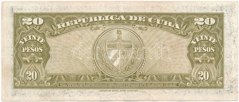 Cuba 1958. 20 Pesos C:F nice paper Kr... https://www.darabanth.com/de/377-Fernauktion/377.0/Numismatik/Weltweit-Banknoten~1500013/Kuba-1958-20P-TIII-szep-papir-Cuba-1958-20-Pesos-CF-nice-paper-Krause-P2380~II2222730