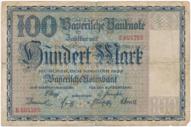 Ger... https://www.darabanth.com/de/377-Fernauktion/377.0/Numismatik/Weltweit-Banknoten~1500013/Nemetorszag-Weimari-Koztarsasag-Bajororszag-1922-100M-TIII--Germany-Weimar-Republic-~II2096962