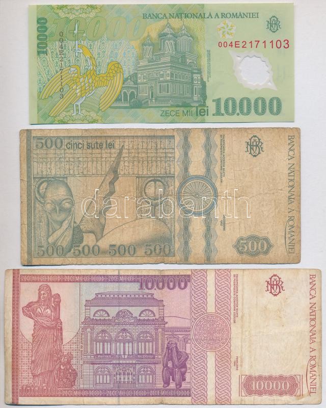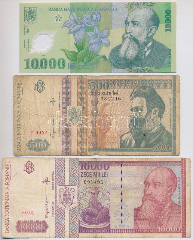 Románia 1992. 500L + 1994. 10.000L + 1998. 1000L + 5000L + 2000. 10.000L T:vegyes