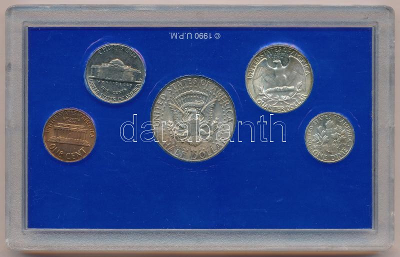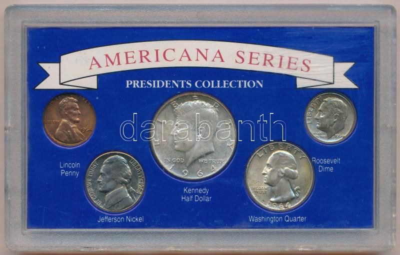Amerikai Egyesült Államok 1964. 1c-1/2$ (5xklf) forgalmi sor, sérült, lezárt plasztiktokban T:1-,2 USA 1964. 1 Cent - 1/2 Dollar (5xdiff) coin set in damaged plastic case C:AU,XF
