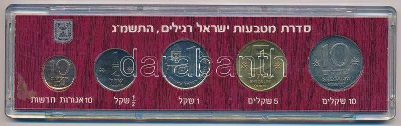 Izrael 1983. 10a-10Sh (5xklf) forgalmi sor dísztokban T:1 Israel 1983. 10 Agorot - 10 Shequalim (5xdiff) coin set in case C:UNC