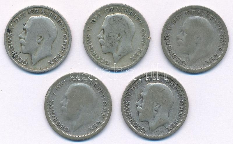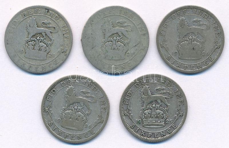 Nagy-Britannia 1921-1926. 6p Ag "V. György" (5x) T:3 Great Britain 1921-1926. 6 Pence Ag "George V" (5x) C:F KM# 815a.1, 815a.2