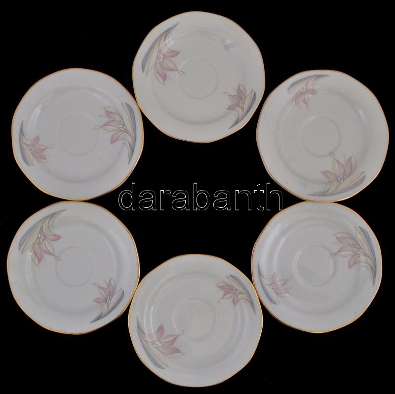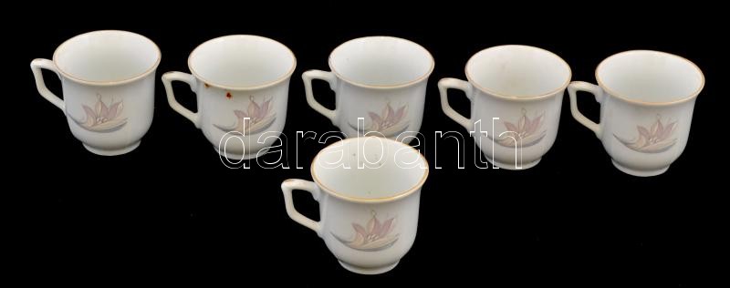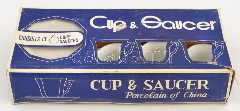 Cup&Saucer, virágmintás porcelán kávéskészlet, matricás, jelzett, eredeti dobozában, 6 db csésze és alj, apró kopásnyomokkal, alj: d: 11 cm, csésze: m: 5,5 cm