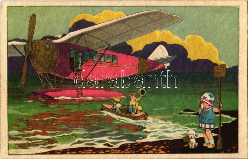 1933 Children art postcard, farewell from the boy on the hydroplane (s... https://www.darabanth.com/de/378-Fernauktion/378.0/Ansichtskarten/Kinder~1500069/1933-Children-art-postcard-farewell-from-the-boy-on-the-hydroplane-seaplane-Degami-2265~II2139485