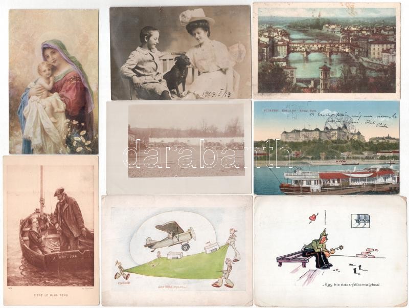 Beschreibung: 42 db vegyes régi képeslap, városképek és motívumok + 1 db fotó