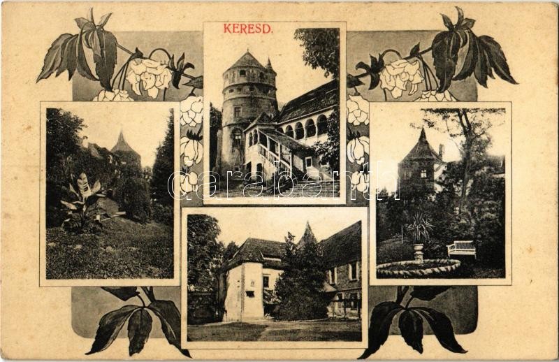 Beschreibung: Keresd, Cris, Kreis; Gróf Bethlen Gábor kastélya és udvara / Kreischer Schlosshof des Grafen Gabriel Bathlen / castle and courtyard, floral (fl)