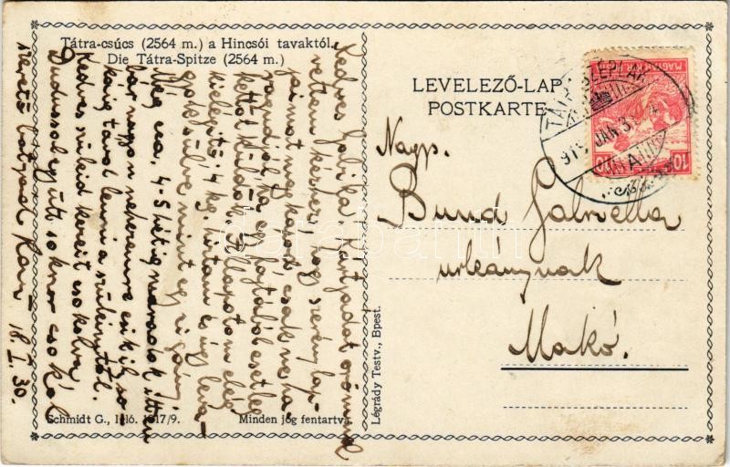 1918 Tátra, Magas-Tátra, Vysoké Tatry; Tátra-csúcs a Hincói tavaktől. ... https://www.darabanth.com/de/378-Fernauktion/378.0/Ansichtskarten/Slowakei~1500007/1918-Tatra-Magas-Tatra-Vysoke-Tatry-Tatra-csucs-a-Hincoi-tavaktol-Schmidt-G-19179-D~II2198513