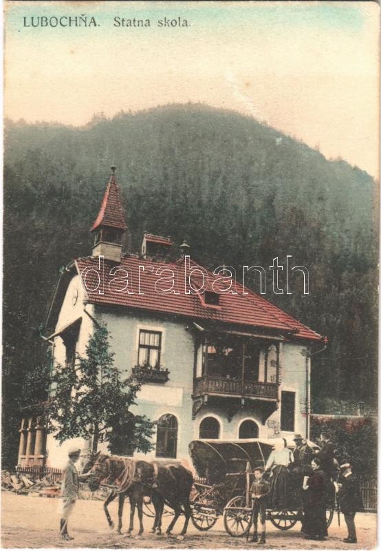 Fenyőháza, Lubochna; Statna skola / Állami iskola, lovaskocsi / school... https://www.darabanth.com/de/378-Fernauktion/378.0/Ansichtskarten/Slowakei~1500007/Fenyohaza-Lubochna-Statna-skola-Allami-iskola-lovaskocsi-school-horse-drawn-carriage-va~II2227583