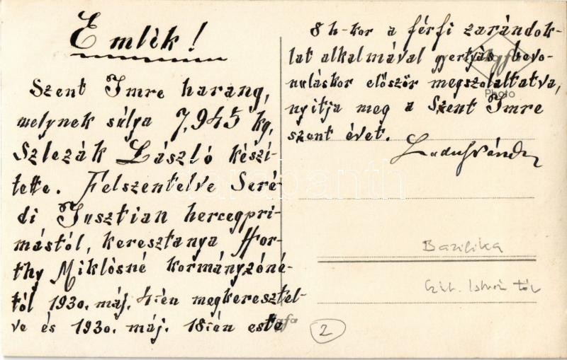 1930 Budapest V. Szent István tér, Szent István Bazilika, Szlezák László harangöntő mester Szent Imre herceg és a Hősök tiszteletére készült harangja és díszítései, a bazilika nagyharangja 1944-ig. photo