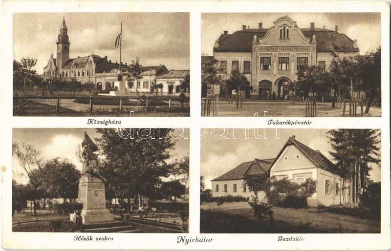 1939 Nyírbátor, Községháza, Országzászló, Takarékpénztár, Hősök szobra... https://www.darabanth.com/de/378-Fernauktion/378.0/Ansichtskarten/Ungarn~1500005/1939-Nyirbator-Kozseghaza-Orszagzaszlo-Takarekpenztar-Hosok-szobra-emlekmu-Gazd~II2107205