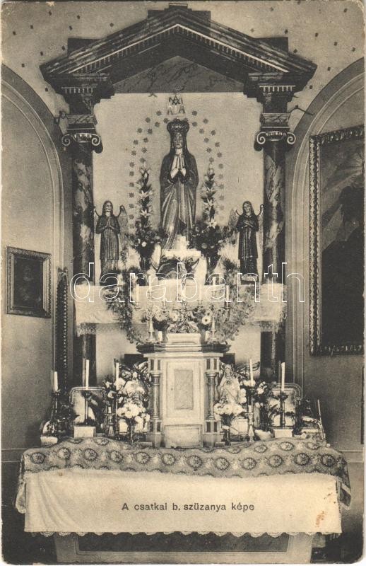 Csatka, Templom belső, Szűzanya képe, oltár (EK) https://www.darabanth.com/de/378-Fernauktion/378.0/Ansichtskarten/Ungarn~1500005/Csatka-Templom-belso-Szuzanya-kepe-oltar-EK~II2092808