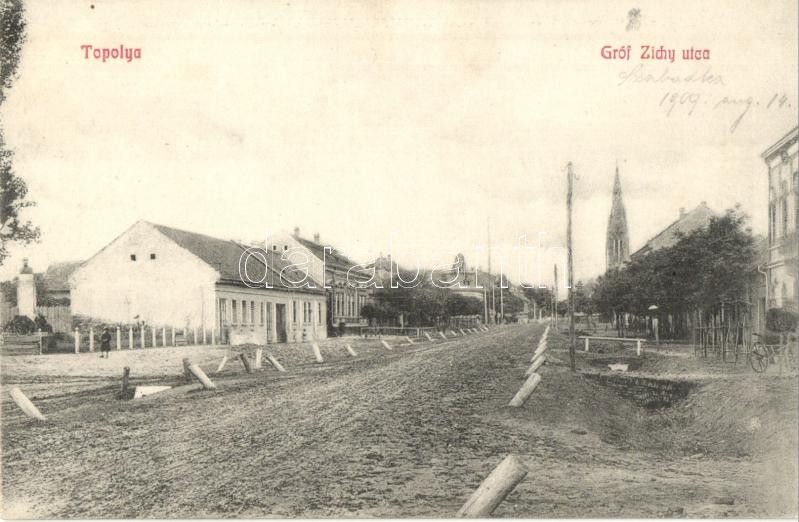 1909 Bácstopolya, Topolya, Backa Topola; Gróf Zichy utca. Riesz Béla k... https://www.darabanth.com/de/378-Fernauktion/378.0/Ansichtskarten/Vojvodina~1500010/1909-Bacstopolya-Topolya-Backa-Topola-Grof-Zichy-utca-Riesz-Bela-kiadasa-street~II1904525