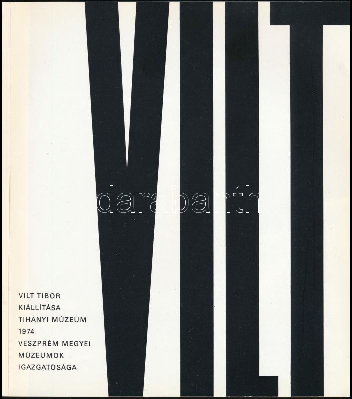 1974 Vilt. Vilt Tibor kiállítása. Tihanyi Múzeum, 1974. Bp., 1974., Veszprém Megyei Múzeumok Igazgatósága. Kiadói papírkötésben, a borító részben elvált a kötéstől. A művész, Vilt Tibor (1905-1983) magyar szobrász, Kossuth-díjas, Munkácsy Mihály-díjas, kiváló művész által dedikált.