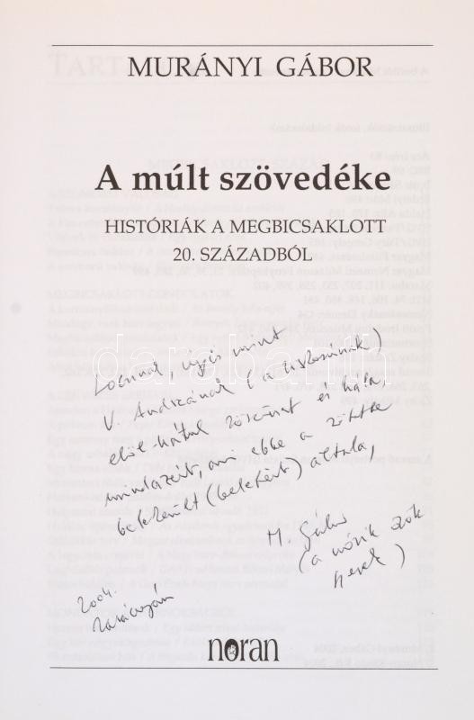Murányi Gábor: A múlt szövedéke. Históriák a megbicsaklott 20. századból. Bp, 2004, Noran-Kiadó. Kiadói kartonált papírkötésben, kiadói védőborítóban, szerző által dedikálva.