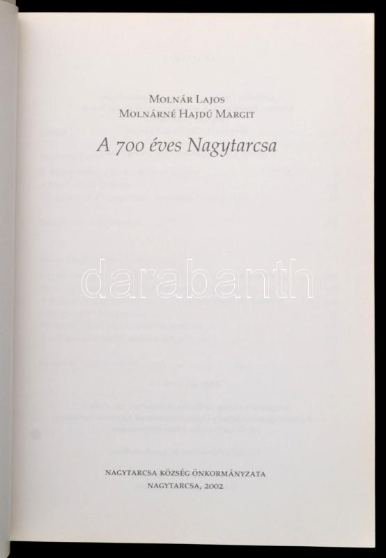 Molnár-Molnárné: A 700 éves Nagytarcsa Nagytarcsa község önk., 2002. Kiadói kartonálás.