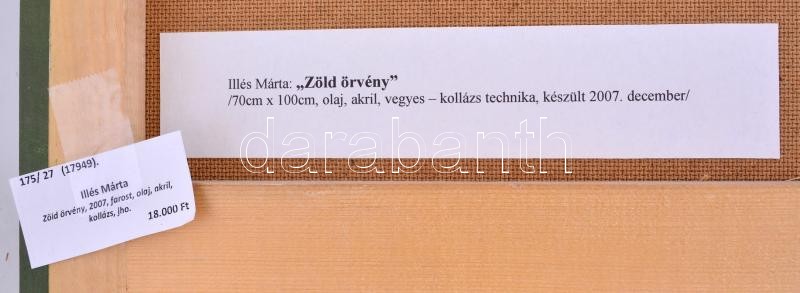 Illés Márta (?-): Zöld örvény (2007). Olaj, akril, vegyes technika, ko... https://www.darabanth.com/de/378-Fernauktion/378.0/Gemalde-und-Grafiken/Gemalde-und-Grafiken~500001/Illes-Marta-Zold-orveny-2007-Olaj-akril-vegyes-technika-kollazs-papir-farostra-~II2154203