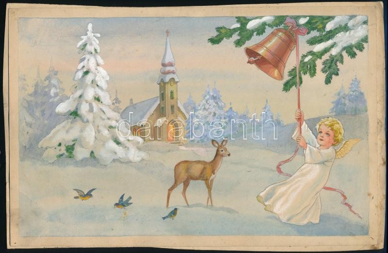Jelzés nélkül: Angyali harangszó. Akvarell, papír, sérült. Papírra kas... https://www.darabanth.com/de/378-Fernauktion/378.0/Gemalde-und-Grafiken/Gemalde-und-Grafiken~500001/Jelzes-nelkul-Angyali-harangszo-Akvarell-papir-serult-Papirra-kasirozva-16-5C39726-5-cm~II2230797