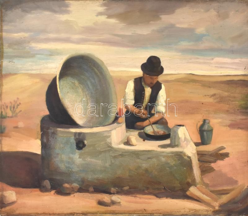 Jelzés nélkül: Főzés a pusztában. Olaj, fa. 48,5×58 cm https://www.darabanth.com/de/378-Fernauktion/378.0/Gemalde-und-Grafiken/Gemalde-und-Grafiken~500001/Jelzes-nelkul-Fozes-a-pusztaban-Olaj-fa-48-5C39758-cm~II2196745