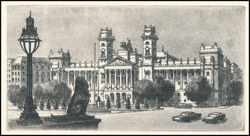 Beschreibung: Jelzés nélkül: Kossuth tér, Budapest. Rézkarc, papír, 7×13 cm