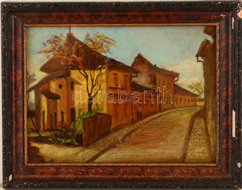Jelzés nélkül: Utcarészlet, olaj, fa, üvegezett fa keretben, 17×23 cm https://www.darabanth.com/de/378-Fernauktion/378.0/Gemalde-und-Grafiken/Gemalde-und-Grafiken~500001/Jelzes-nelkul-Utcareszlet-olaj-fa-uvegezett-fa-keretben-17C39723-cm~II2010145