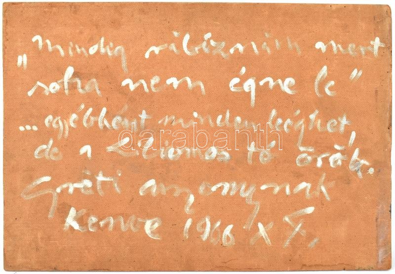 Beschreibung: Mészöly László (1893-?): Arab város. Olaj, karton, jelzett és datált (Mészöly L 1919), sérült, 34×49 cm