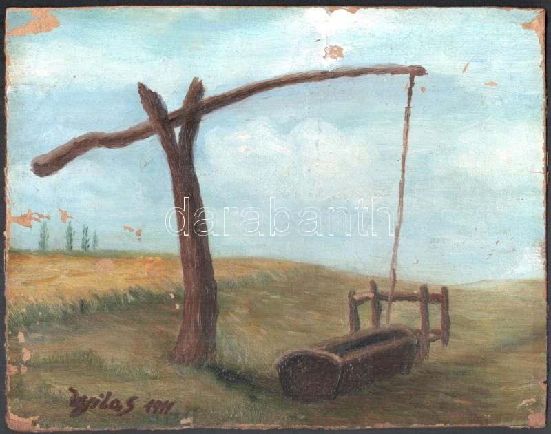 Nyilas jelzéssel: Gémeskút a pusztában, olaj, karton, sérült, 22x28 cm https://www.darabanth.com/de/378-Fernauktion/378.0/Gemalde-und-Grafiken/Gemalde-und-Grafiken~500001/Nyilas-jelzessel-Gemeskut-a-pusztaban-olaj-karton-serult-22x28-cm~II2191541