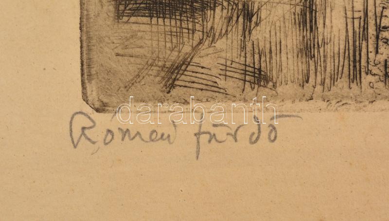 Beschreibung: Varga Nándor Lajos (1895 - 1978): Római fürdő, rézkarc, papír, néhány apró folttal, fa keretben 29 x 38 cm