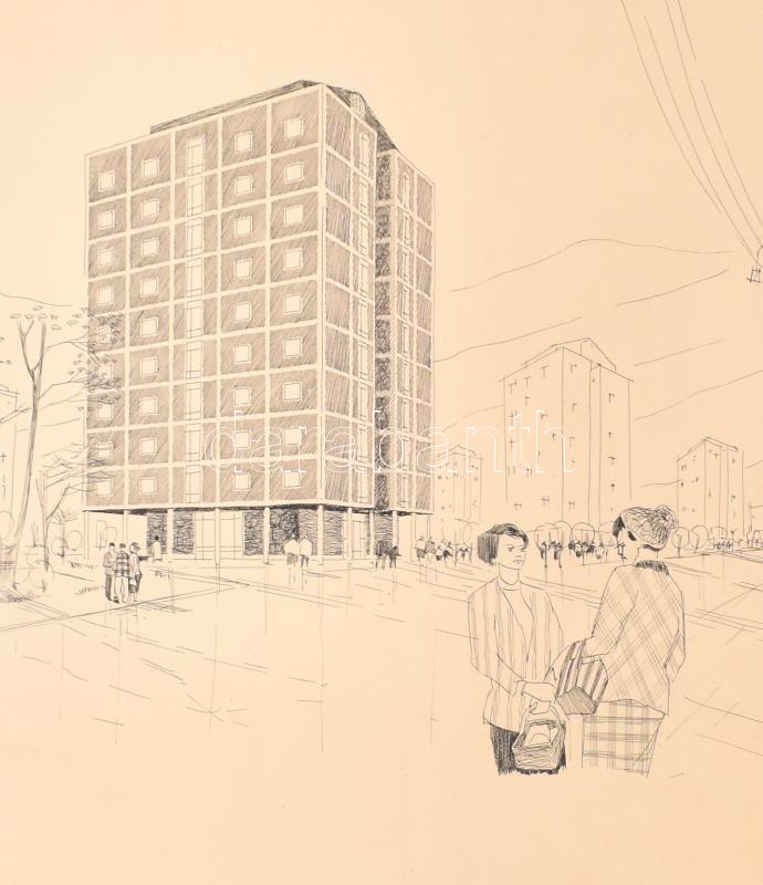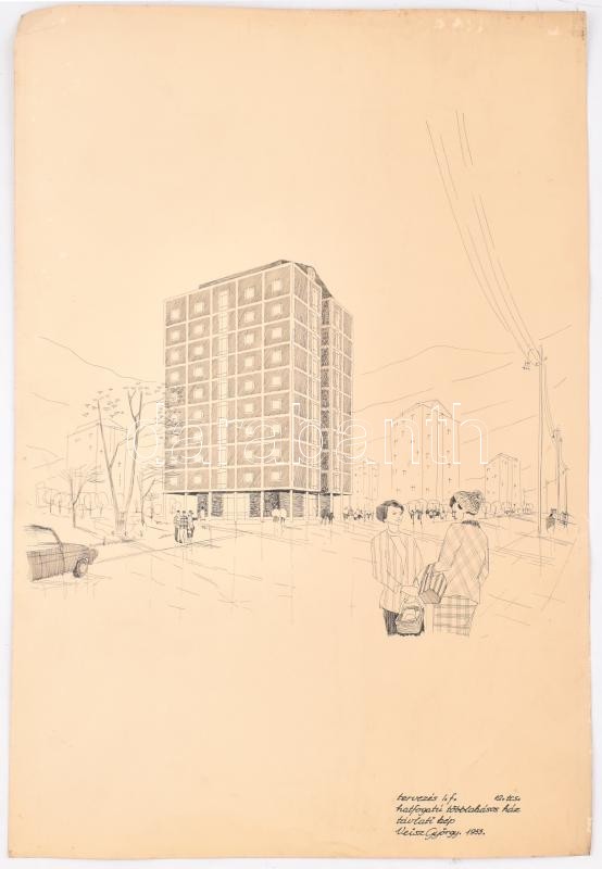 Veisz György 1955 jelzéssel: Hatfogatú többlakásos ház távlati képe. T... https://www.darabanth.com/de/378-Fernauktion/378.0/Gemalde-und-Grafiken/Gemalde-und-Grafiken~500001/Veisz-Gyorgy-1955-jelzessel-Hatfogatu-tobblakasos-haz-tavlati-kepe-Toll-papir-felso-sa~II2195604
