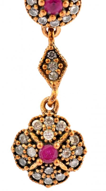 Beschreibung: Aranyozott ezüst(Ag) virágos, kövekkel gazdagon kirakott fülbevalópár, jelzett, h: 3,5 cm, bruttó: 9,25 g