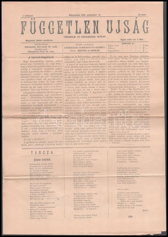 cca 1900 4 db helyi újság. Rákospalotai Független Új ság, Szántővetők ... https://www.darabanth.com/de/378-Fernauktion/378.0/Kunst-Dokumente-andere-Sammelgebiete/Drucksachen~500031/cca-1900-4-db-helyi-ujsag-Rakospalotai-Fuggetlen-Uj-sag-Szantovetok-lapja-Kalocsai-nepl~II2226168