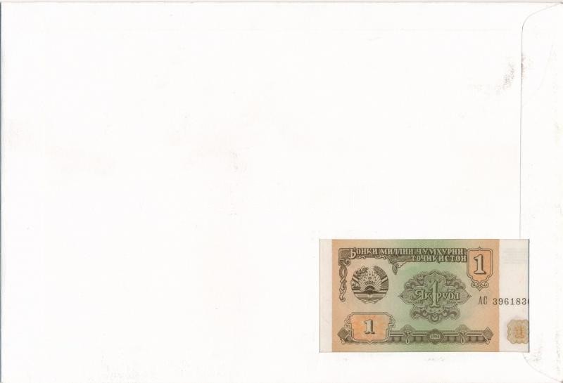 Tajikistan 1994. 1 Ruble in envelope with stamps and cancellations C:UNC