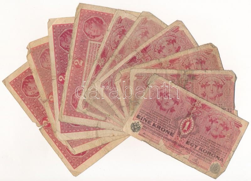 Beschreibung: 1916. 1K (6x) + 1917. 2K (4x) T:III-,IV ly., ragasztott Adamo K3,K6