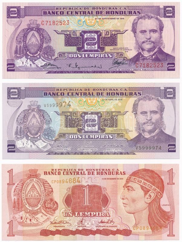 Honduras 1976. 2 Lempiras + 2000. 1 Lempira + 2008. 2 Lempiras C:UNC,AU